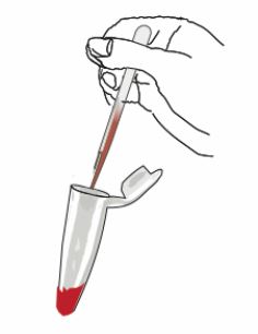 Извадете тампона и вземете от сместа с пипетата. Ако сместа е много гъста, може да добавите още една капка реагент.