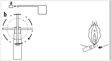 Внимателно поставете спрей накрайника вътре във влагалището и направете 2-3 впръсквания. Препоръчва се допълнително напръскване външно за по-пълно дезинфектиращо действие.