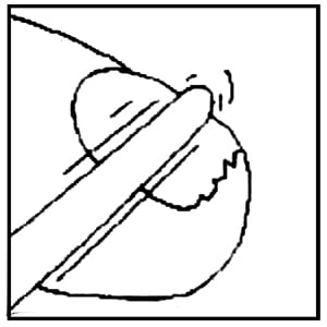 Всеки път, преди да нанесете лака за нокти, изпилете засегнатите части от нокътя (особено повърхността на нокътя), колкото е възможно повече с една от приложените пилички.