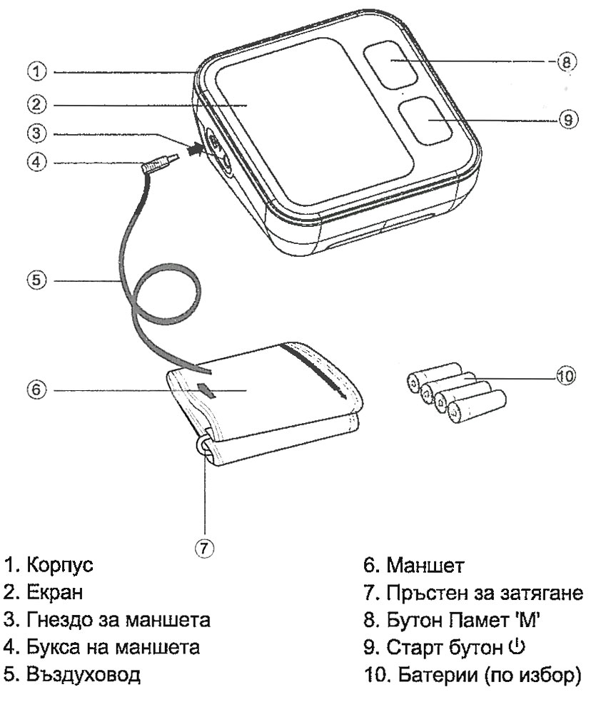 | Комплектът включва | Корпус, маншет, 4 батерии ААА (по избор), подаръчна кутия, ръководство за употреба |