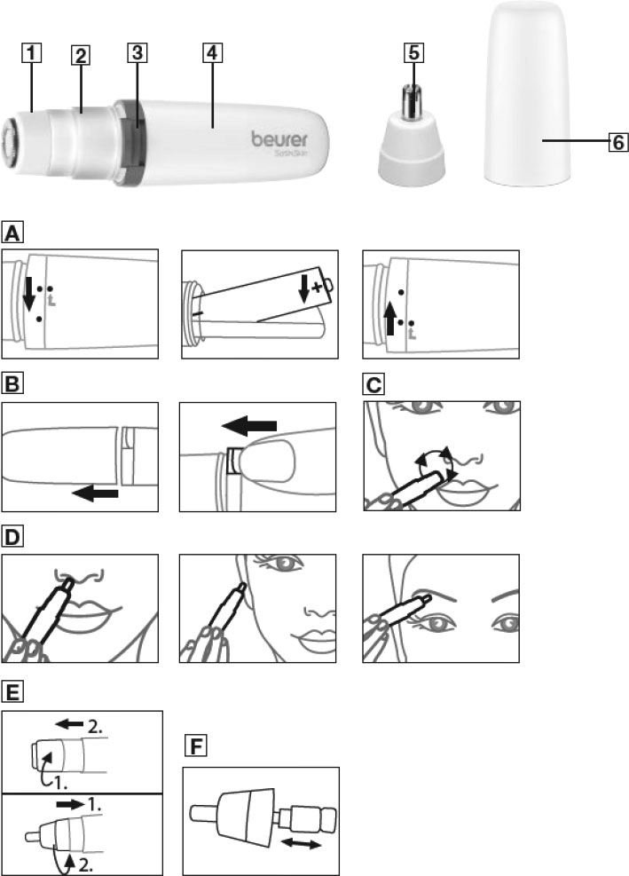 - Това устройство е предназначено за премахване на нежеланото окосмяване на лицето ви. То е подходящо за премахване на космите в ушите и ноздрите ви, както и за оформяне на веждите ви. Това устройството трябва да бъде употребявано само по описания в това ръководство начин. Производителят не носи отговорност за повреди и наранявания, които са следствие от неправилна и небрежна употреба.