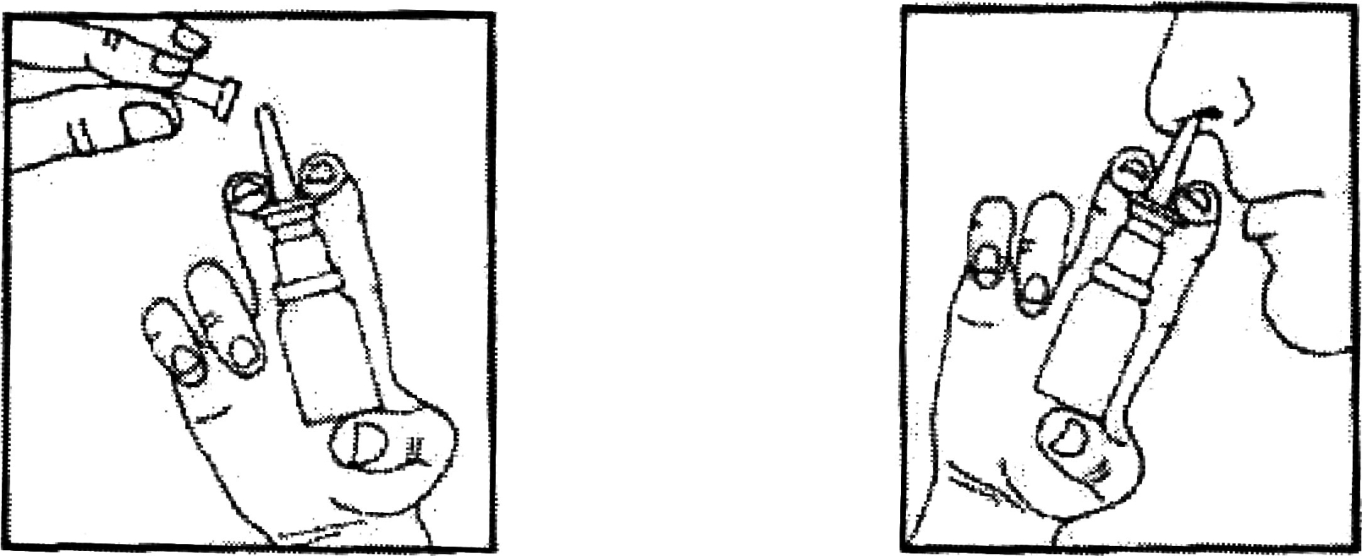 Преди първото приложение на опаковката, след свалянето на защитната капачка, 3-5 пъти да се натисне дозаторът, до появата на продукта в наконечника. Върхът на наконечника се поставя в ноздрата. Натиска се дозаторът, като опаковката се държи вертикално, което позволява разпръскване на лекарството в носа.