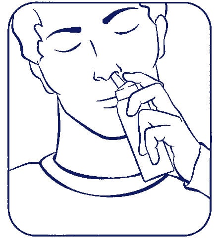 3. Внимателно поставете накрайника в ноздрата, като можете да държите флакона под всякакъв ъгъл
