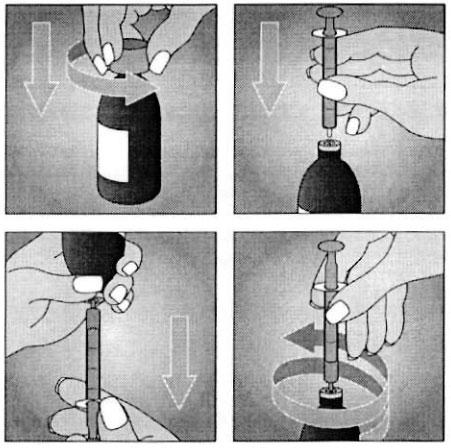 5. Изправете бутилката в изходно положение и с внимателно завъртане отстранете спринцовката.
