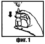 3. Поставете апликатора в ноздрата си и еднократно задействайте дозиращото устройство (вижте фиг. 2). Повторете това и в другата ноздра. При отделянето на спрей, вдишайте леко през носа.