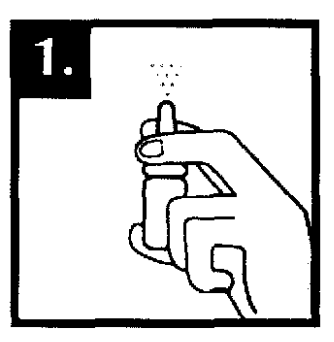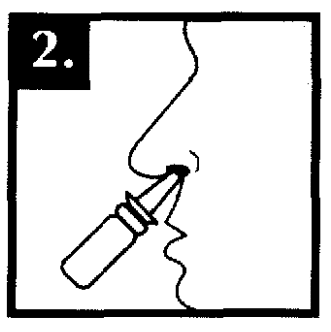 Поставете наконечника в ноздрата, в максимално вертикално положение и натиснете пулверизатора веднъж. Внимателно вдишайте през носа докато впръсквате. Ако е необходимо, повторете процедурата за другата ноздра.