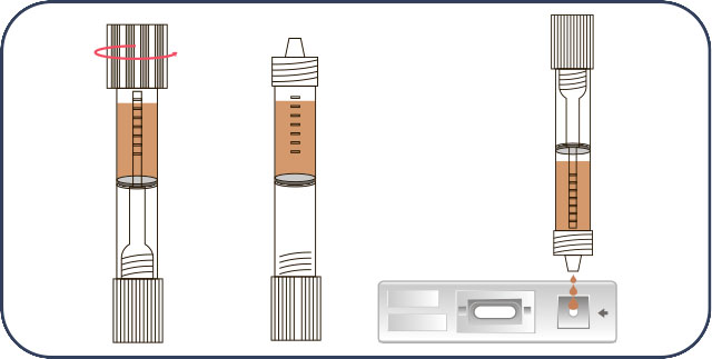 1. Съберете проба от изпражнения, използвайки предоставената епруветка за събиране. Първо развийте малката капачка на епруветката и извадете пробовземната пръчица.