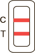 | ПОЛОЖИТЕЛЕН (+) Появяват се две цветни линии - в тестовата (T) зона и в контролната (C) зона. Това показва положителен резултат за хемоглобинов антиген в пробата. |