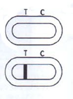 Появява се само една цветна линия, в зоната, маркирана с С (Контрола). Този резултат означава, че нивата на TSH са нормални и че щитовидната жлеза функционира нормално.