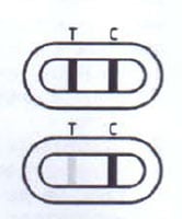 Две цветни линии се появяват в прозорчето под буквите Т (Тест) и С (Контрола). Яркостта на тестовата линия (Т) може да е по-голяма от тази на контролната линия (С). Този резултат сочи към завишени нива на TSH и съответно дисфункция на щитовидната жлеза Препоръчва се да се консултирате с лекар.