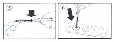 9. Стискайки балончето на пипетата, капнете кръвта, която сте събрали, в отвора върху тест-касетата. (фиг. 6)